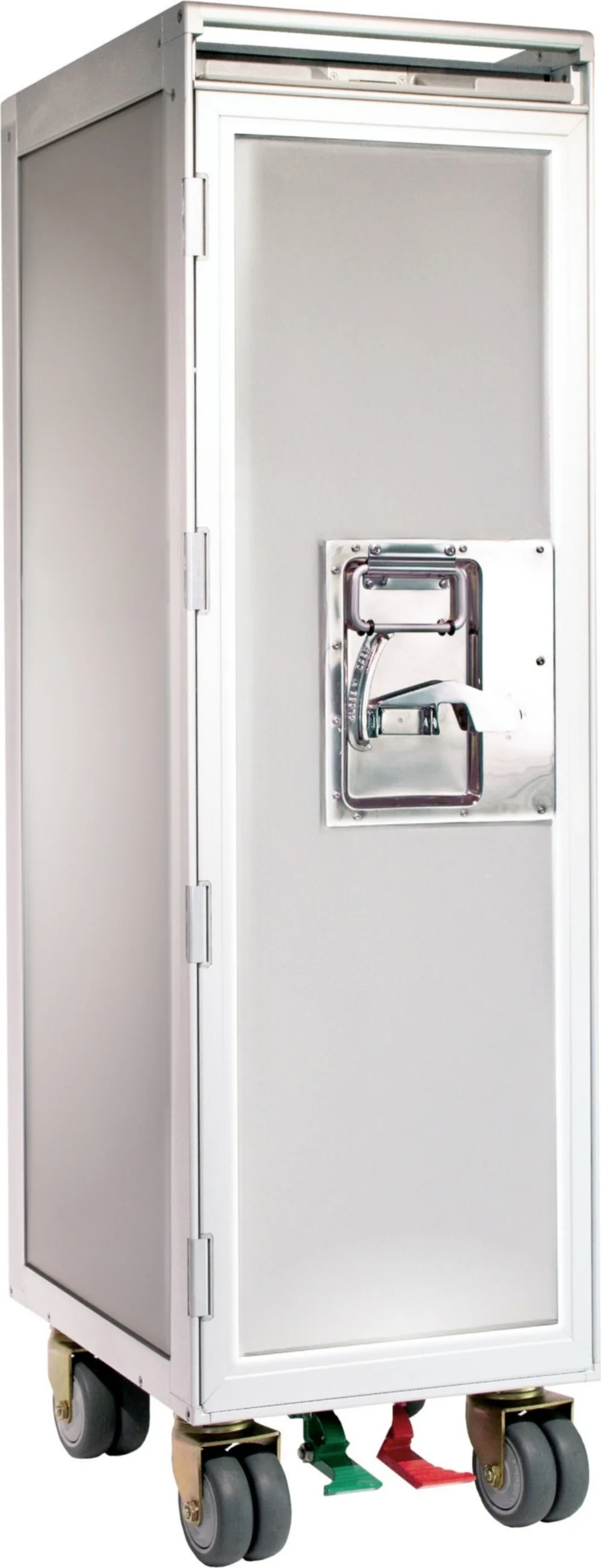 - Rodízios giratórios de 360° com freio de estacionamento vermelho e pedal de liberação verde