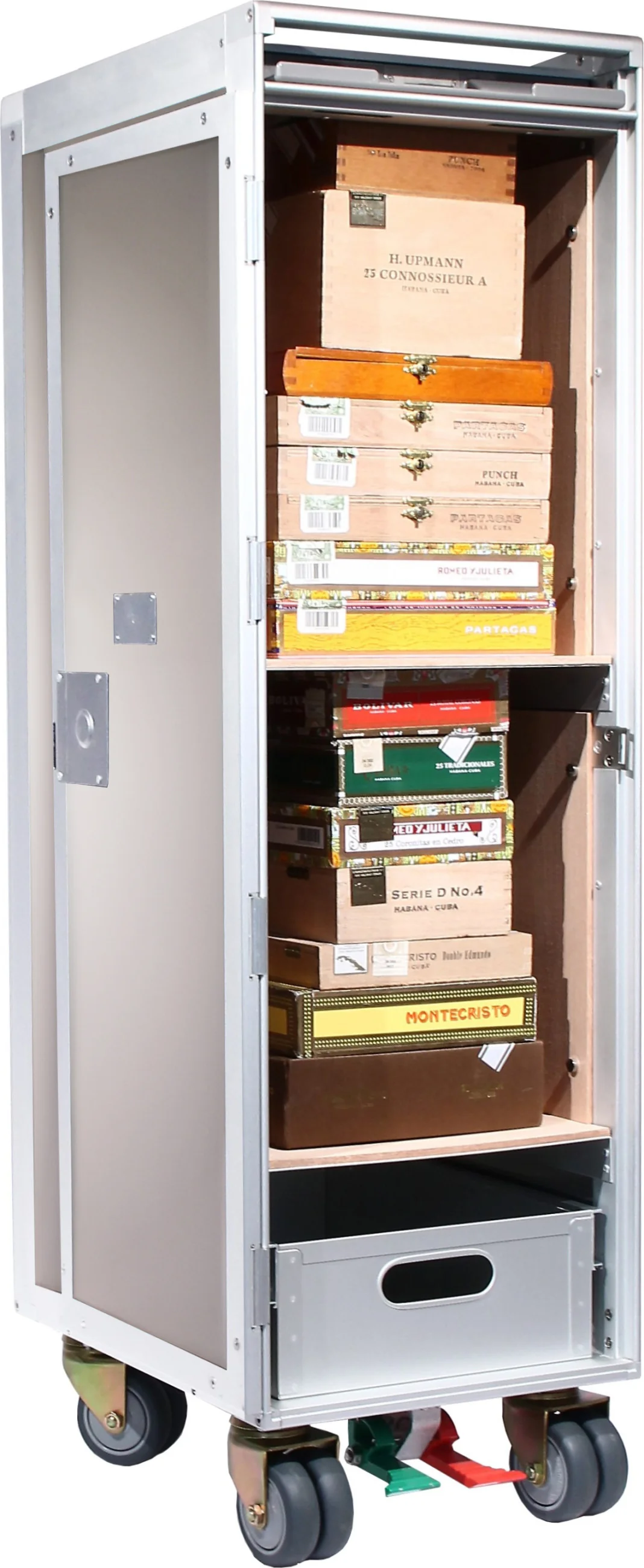 - Carrinhos de avião originais convertidos em gabinetes exclusivos para charutos