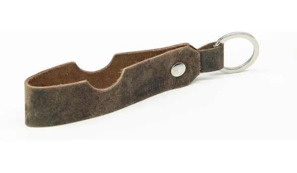 A pulseira marrom, rústica de couro genuíno e o chaveiro universal formam uma combinação atraente, mas há muito mais aqui do que aparenta. Coloque o chaveiro de couro de lado com os entalhes despretensiosos no couro voltados para cima, e este chaveiro de repente se torna um descanso de charuto portátil capaz de segurar a maioria dos charutos de tamanho padrão. Quer levar seu cachimbo para um passeio? Sem problemas, basta abrir um pouco o couro e você terá um descanso de cachimbo que pode ser usado em qualquer lugar!