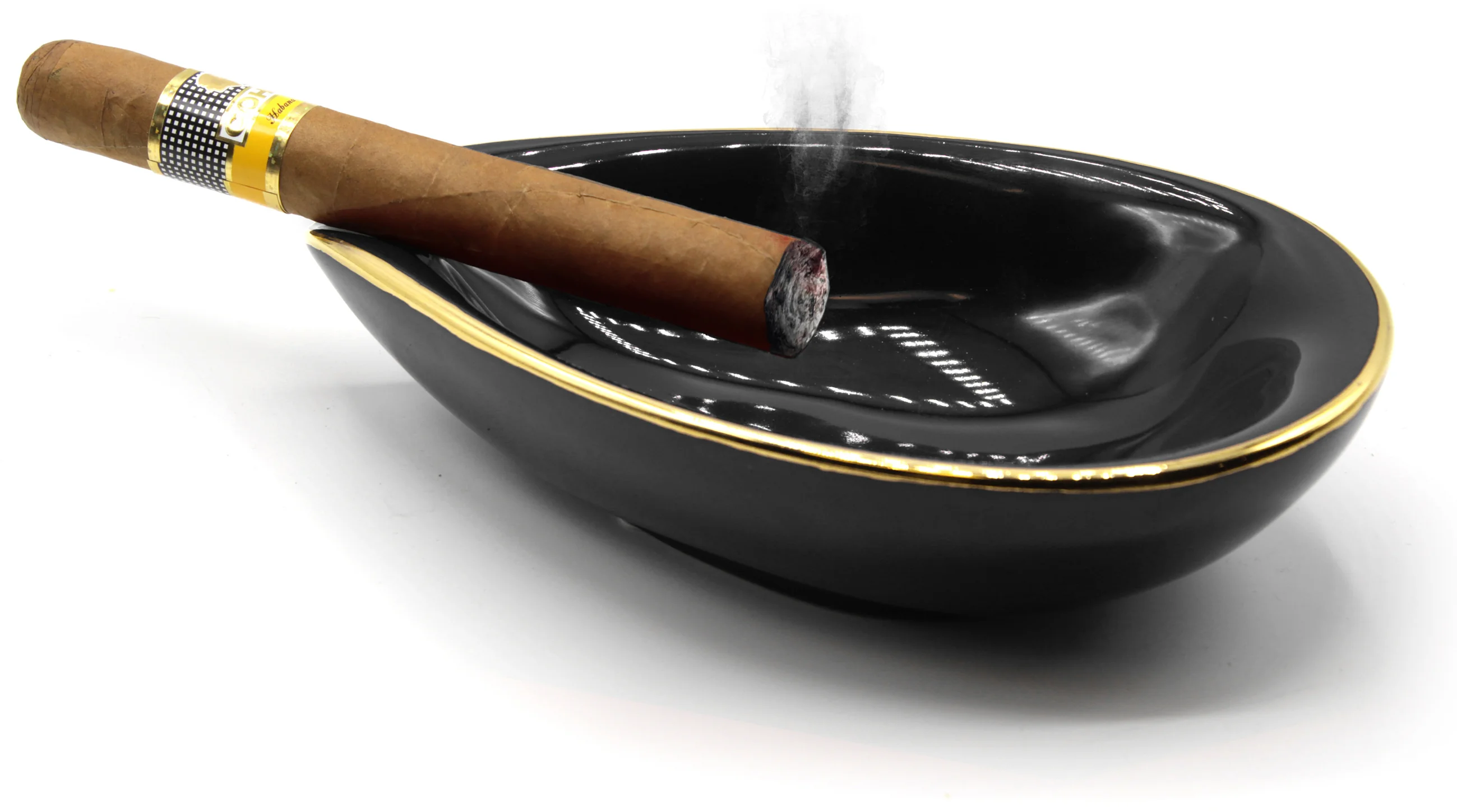 Cinzeiro de charuto de cerâmica adorini folha preta
