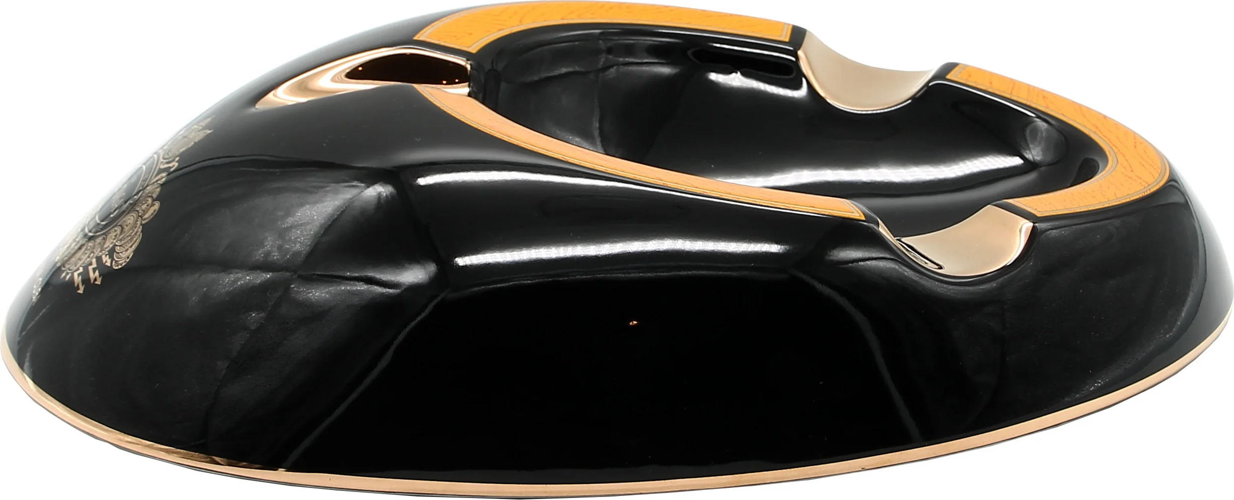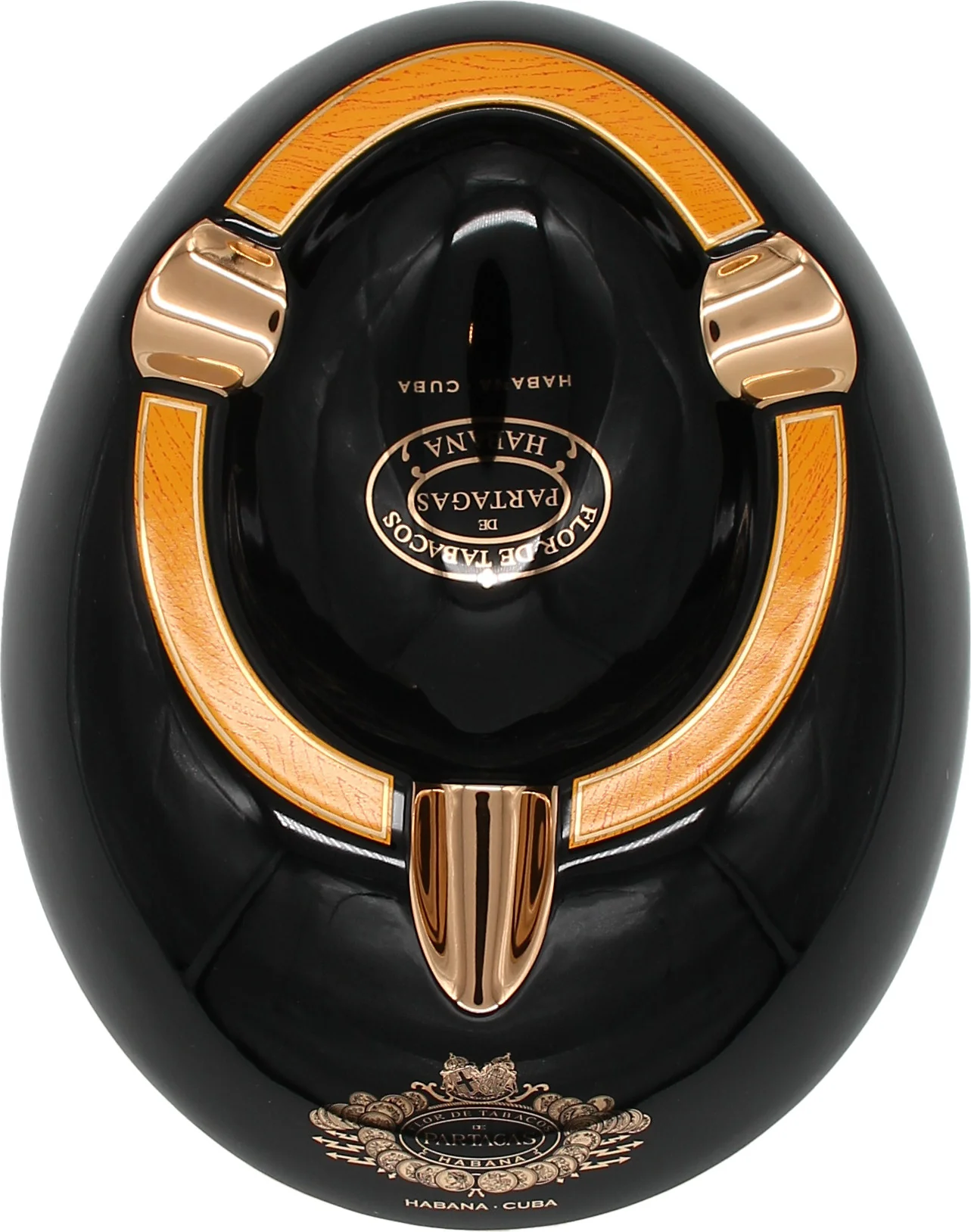 The Partagás Classic Ashtray is an impressive design object from the long-established Cuban cigar brand Partagás. The ashtray is made of high-quality black porcelain and is decorated with gold and signature orange accents. This color combination gives it an elegant yet distinctive Partagás look.