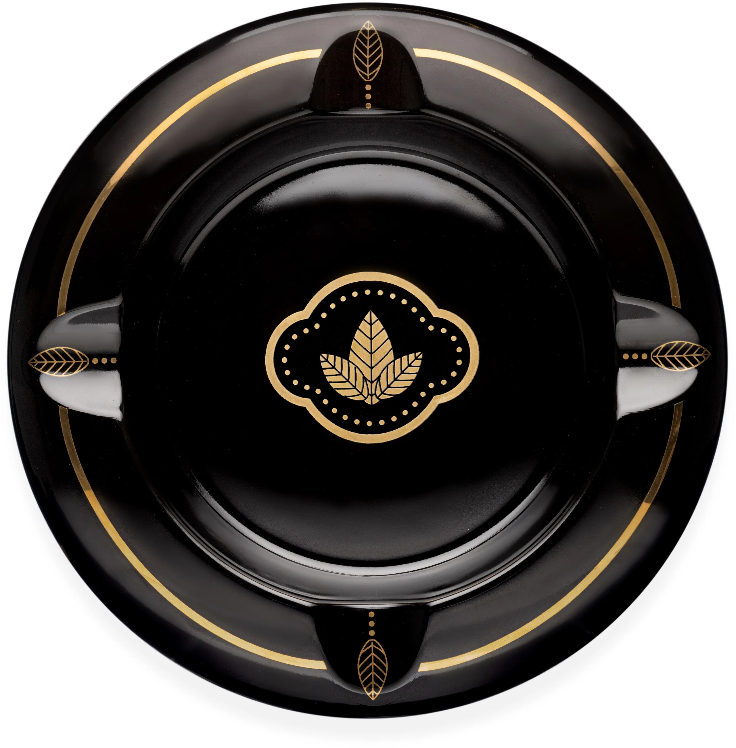Feito de porcelana, este cinzeiro tem um diâmetro de 21,5 cm e uma altura de 4,5 cm. A luxuosa combinação de preto brilhante e detalhes dourados adiciona um toque extra de sofisticação ao seu prazer com charutos.