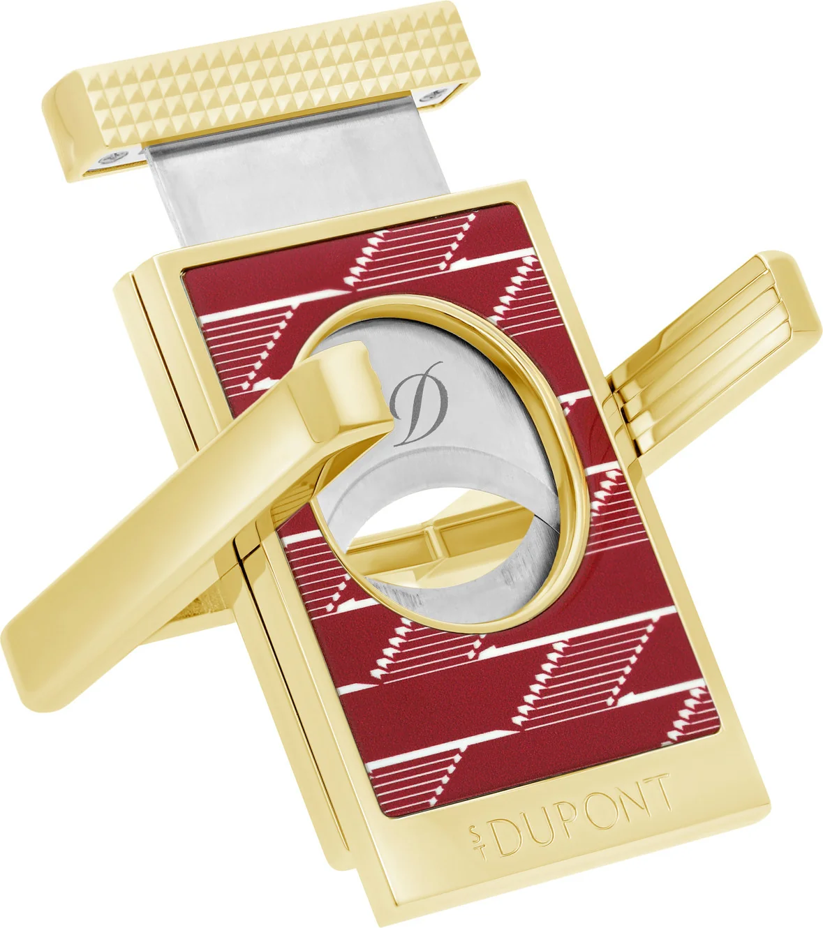 Esse cortador de charutos da marca francesa de luxo S.T. Dupont é muito mais do que uma ferramenta de corte. Quando aberto, ele também serve como um elegante descanso para charutos, combinando design e função em um formato compacto.