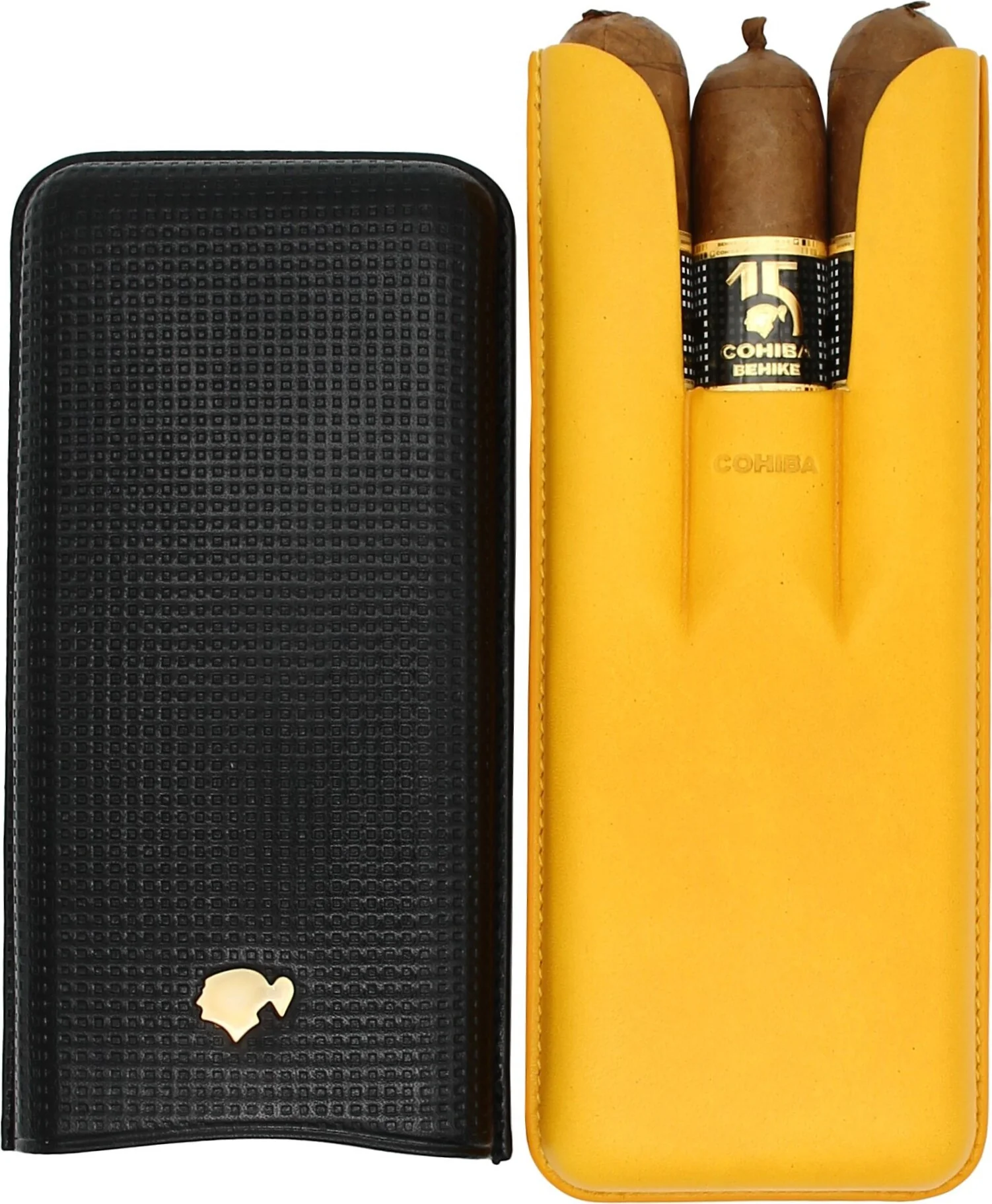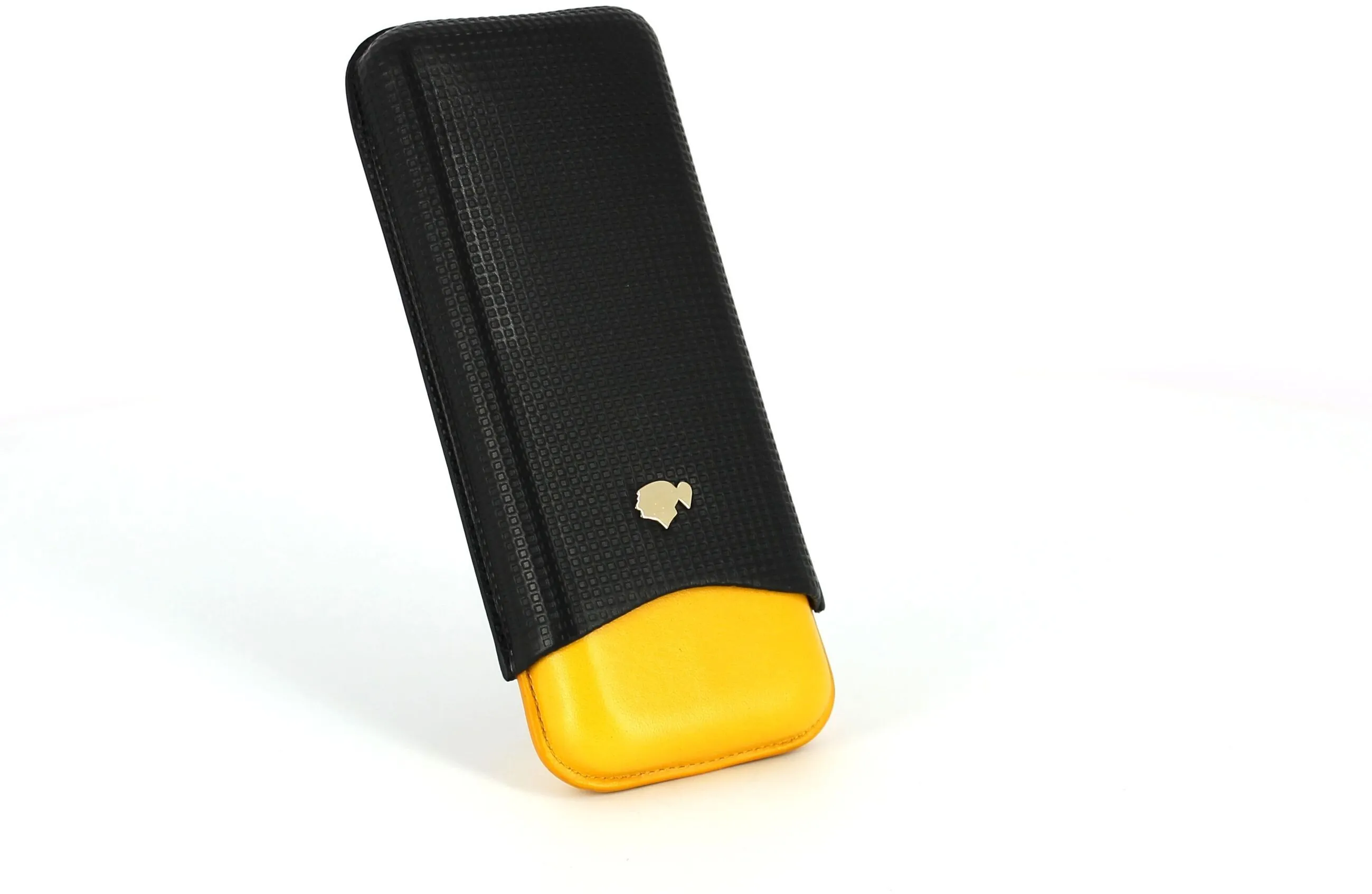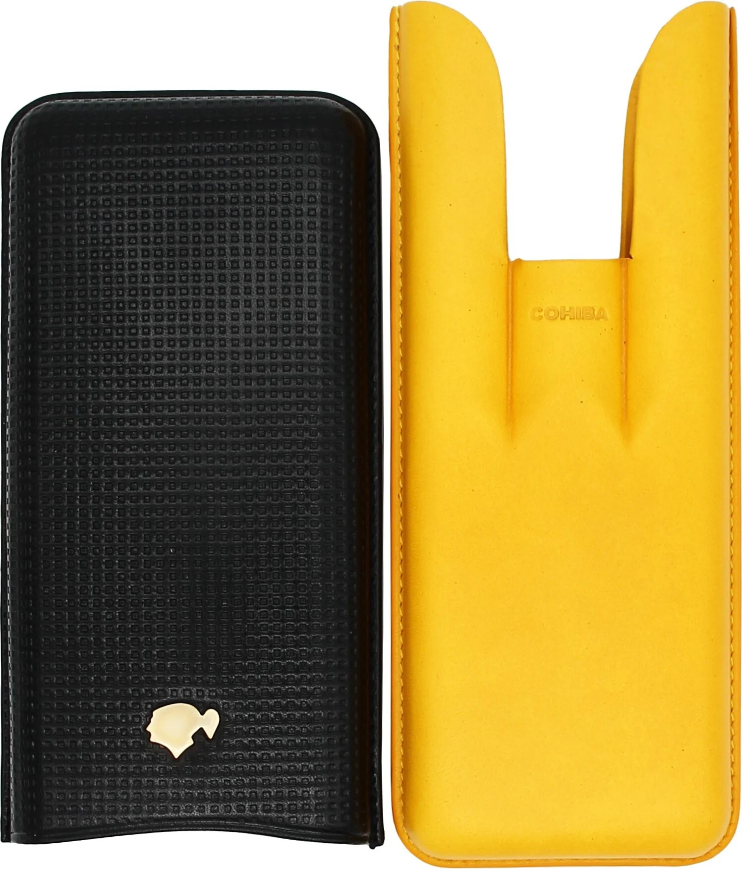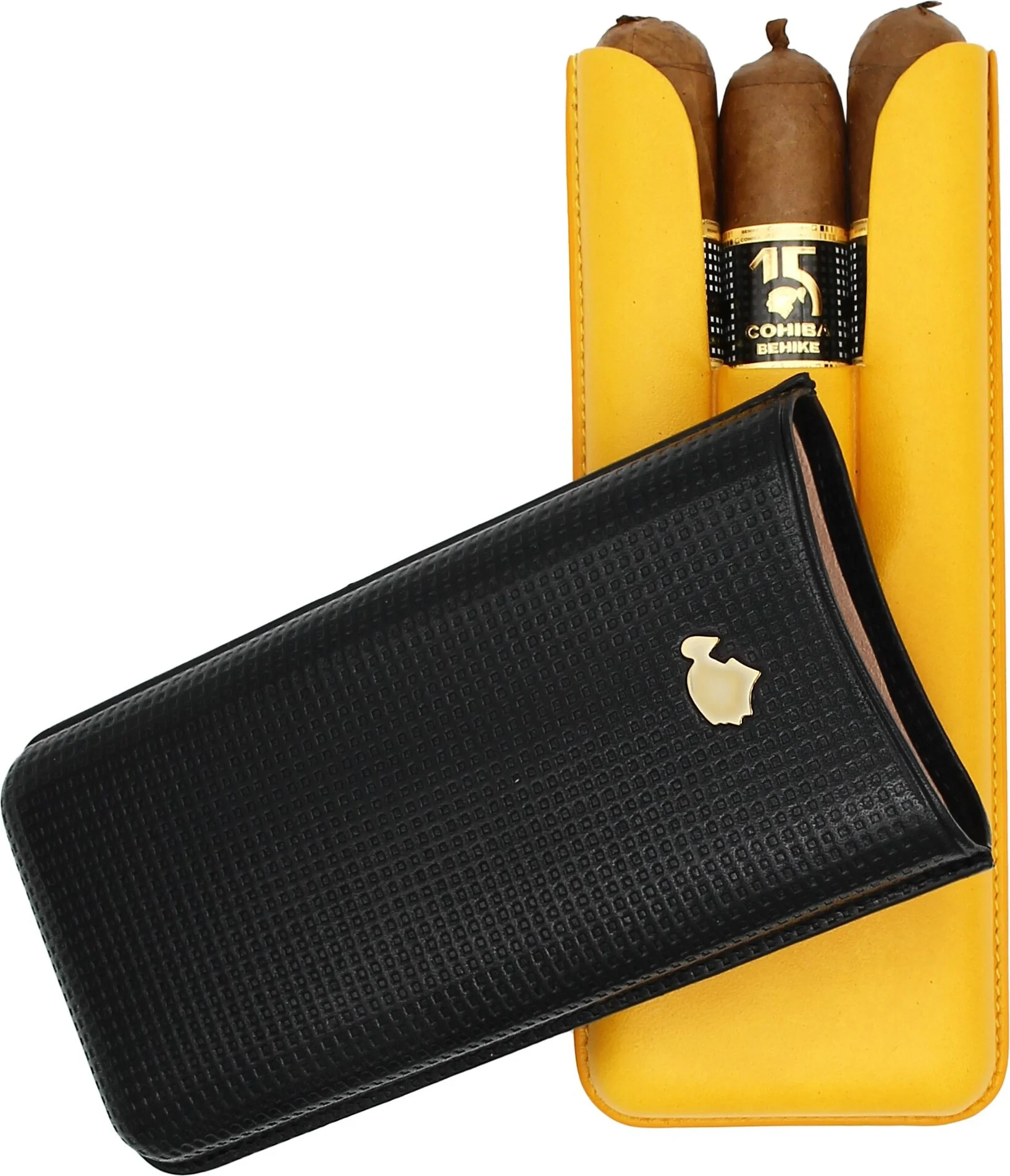 >>br /> The striking genuine Spanish leather cigar case immediately catch the eye with its two-tone yellow and black colors, which those in the know will instantaneamente reconhecer como uma homenagem à famosa faixa de charutos da marca. A parte superior preta da caixa é decorada com uma grade texturizada, moldada após o padrão quadrado familiar da banda de charutos Cohiba. A icônica silhueta de Cohiba em prata termina com um toque de elegância.