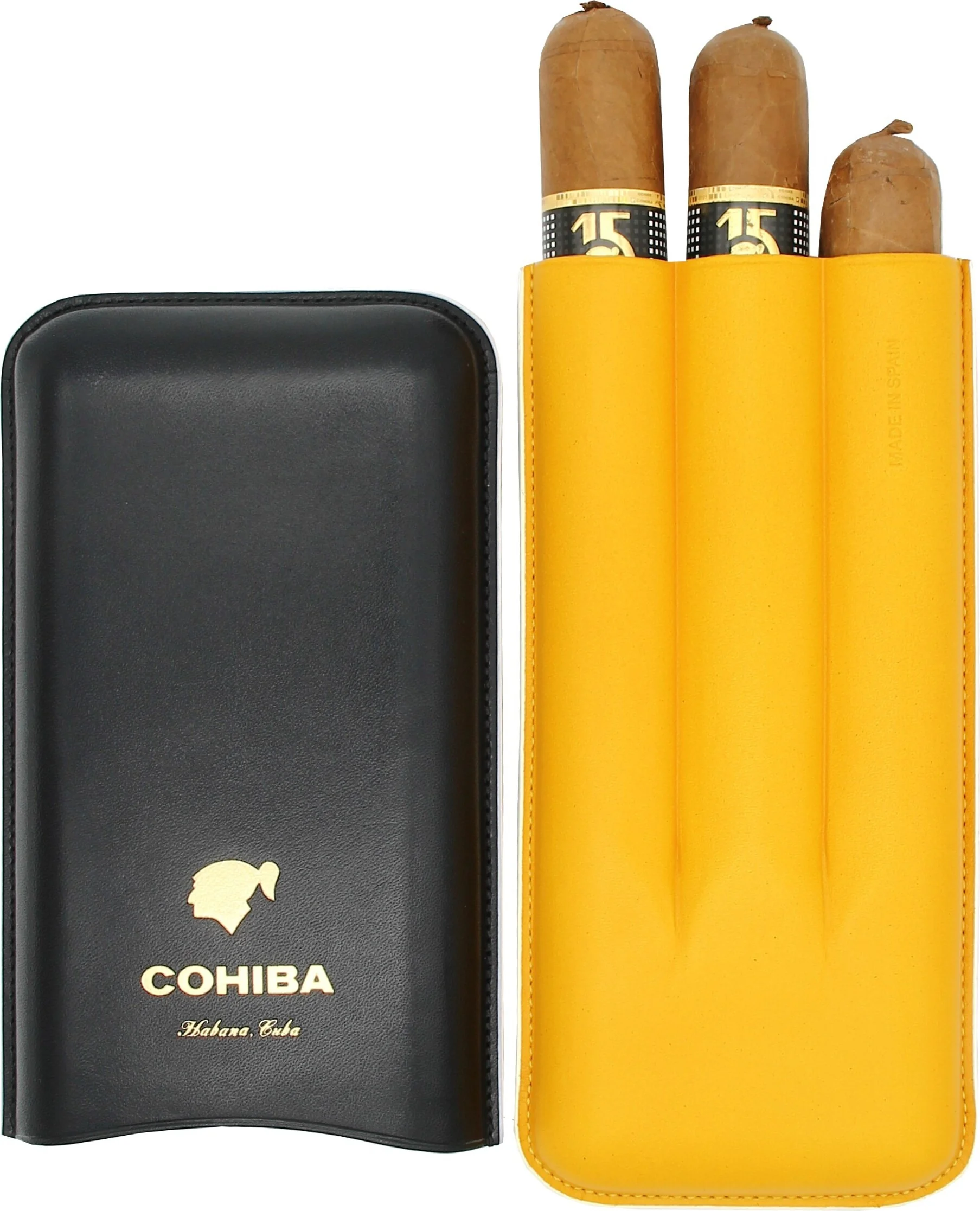 - High-quality color combination of black, yellow, and white in iconic Cohiba design