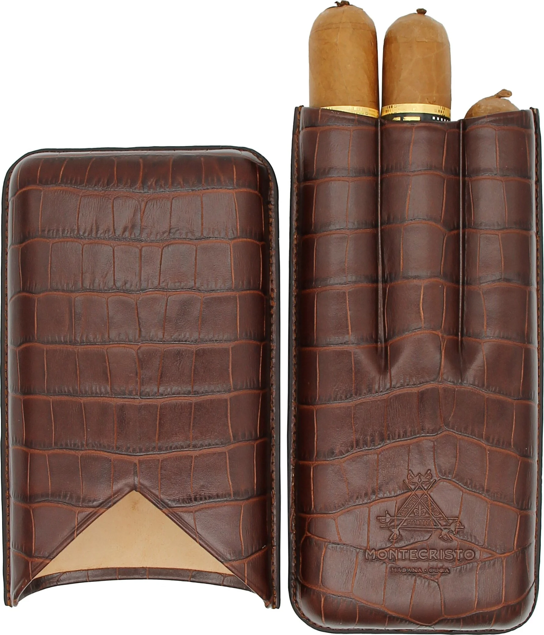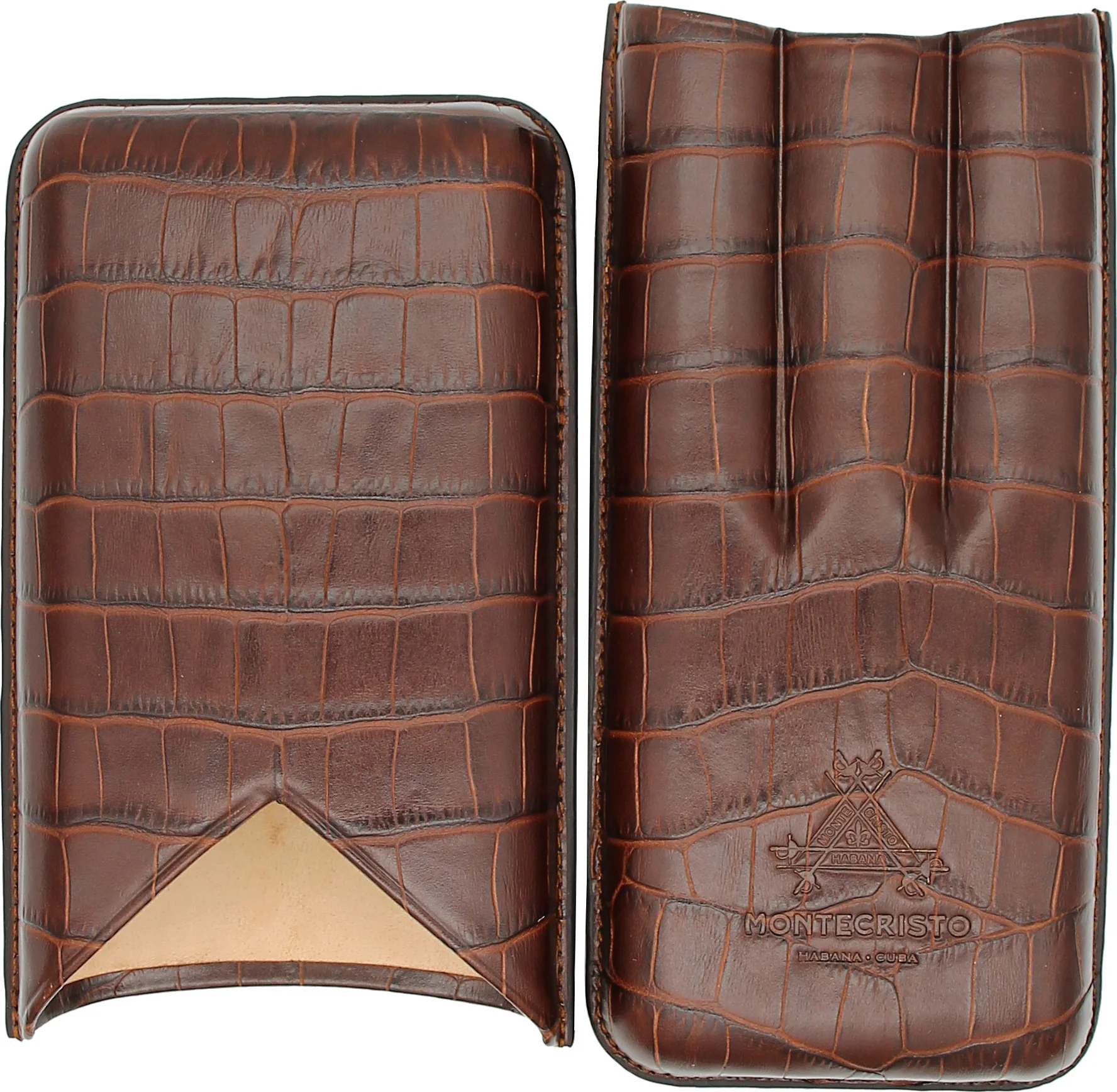 Montecristo Leather Cigar Case, Brown, for 3 Cigars