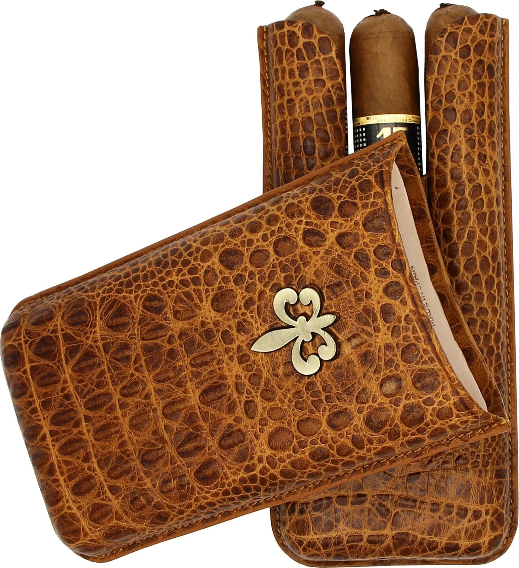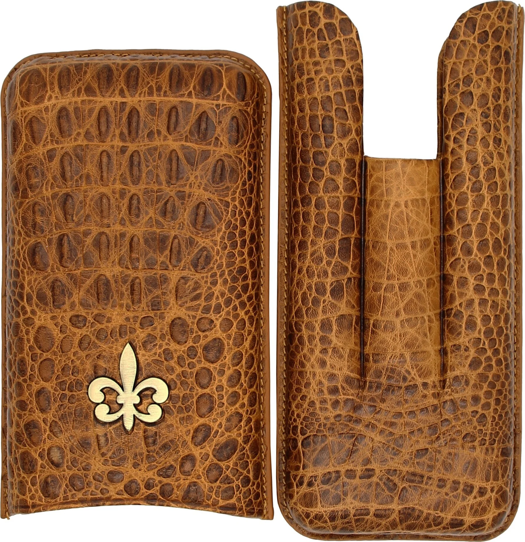 Montecristo Fleur de Lis Leather Cigar Case, Crocodile Pattern, Brown