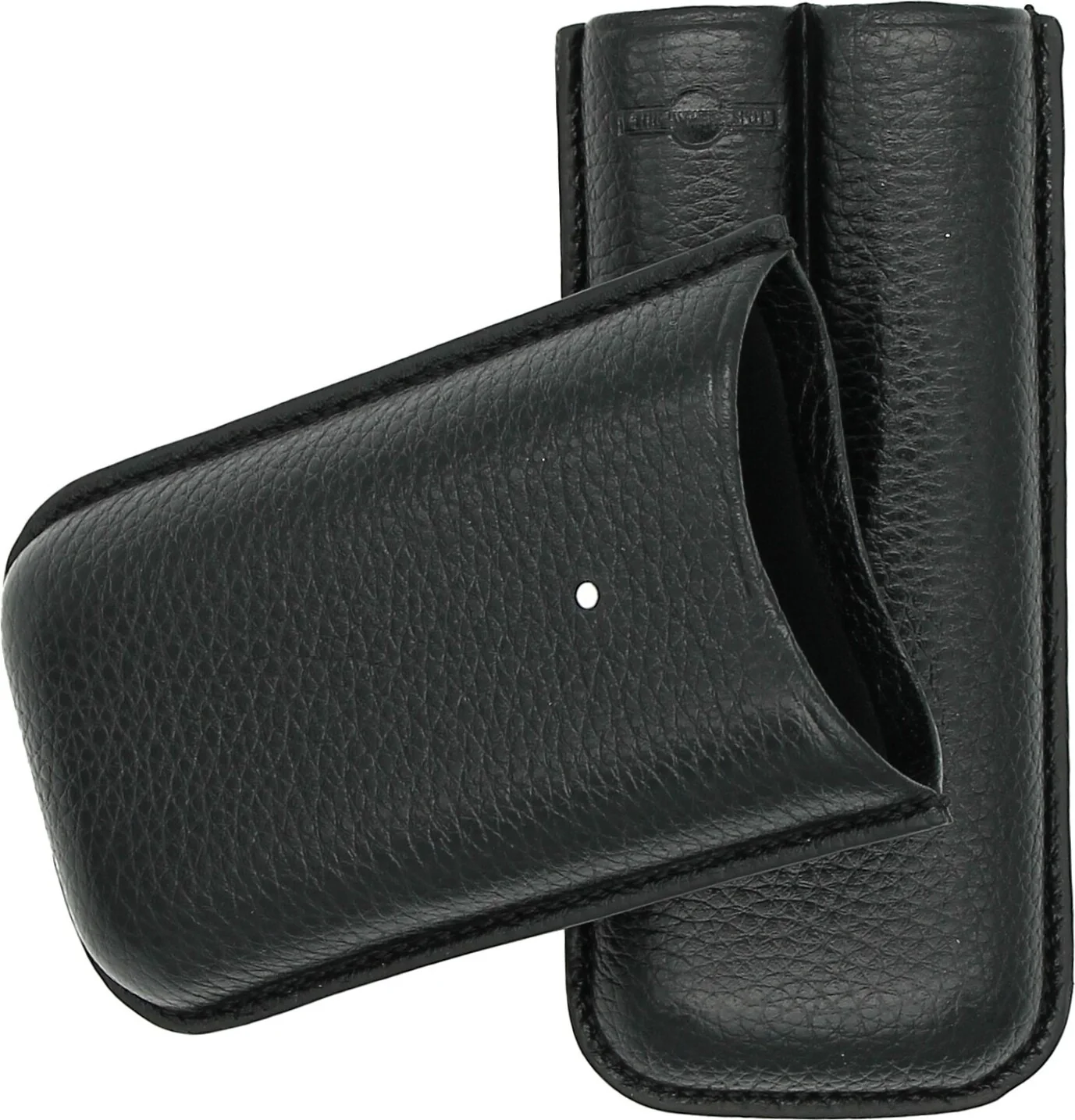 Inside, the case offers space for two cigars of different sizes. Practical notches ensure secure hold during transport. The interior is lined with soft leather and reliably protects the cigars.