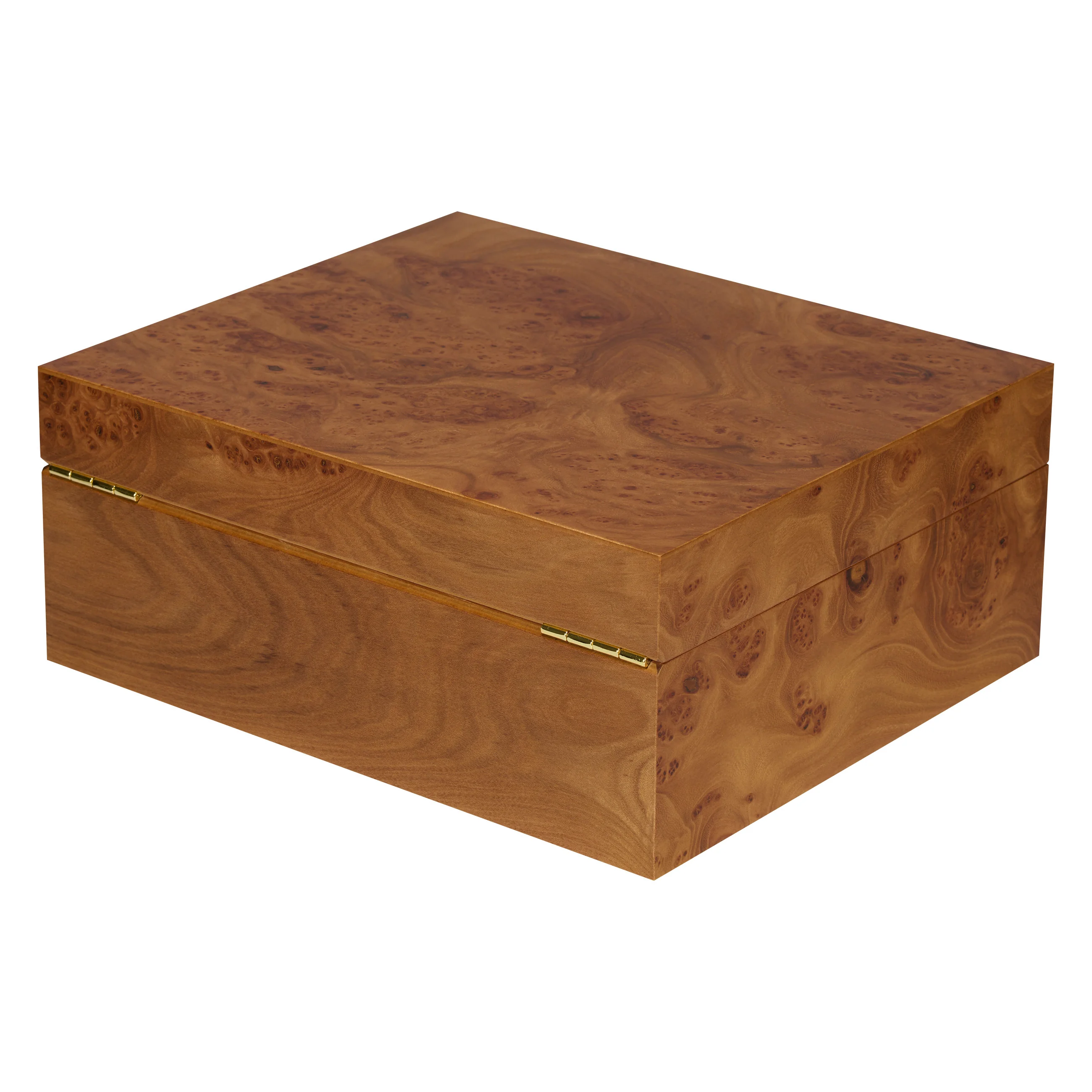 The elm wood impresses with its characteristic grain with warm to dark brown tones, interspersed with striking burrs, also known as "eyes." Thanks to its warm and natural appearance, the humidor blends harmoniously into almost any setting. Medium-sized humidors hold up to 75 cigars, providing ample space for your cigar collection.