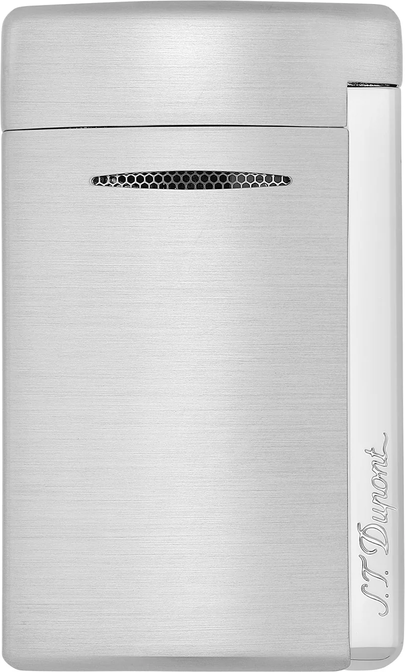 O isqueiro S.T. Dupont Minijet em cromo escovado com detalhes brilhantes é um isqueiro sofisticado e prático que impressiona com sua poderosa chama a jato e ignição piezo elétrica. O acabamento escovado com detalhes em cromo polido o torna um acessório elegante para o uso diário.