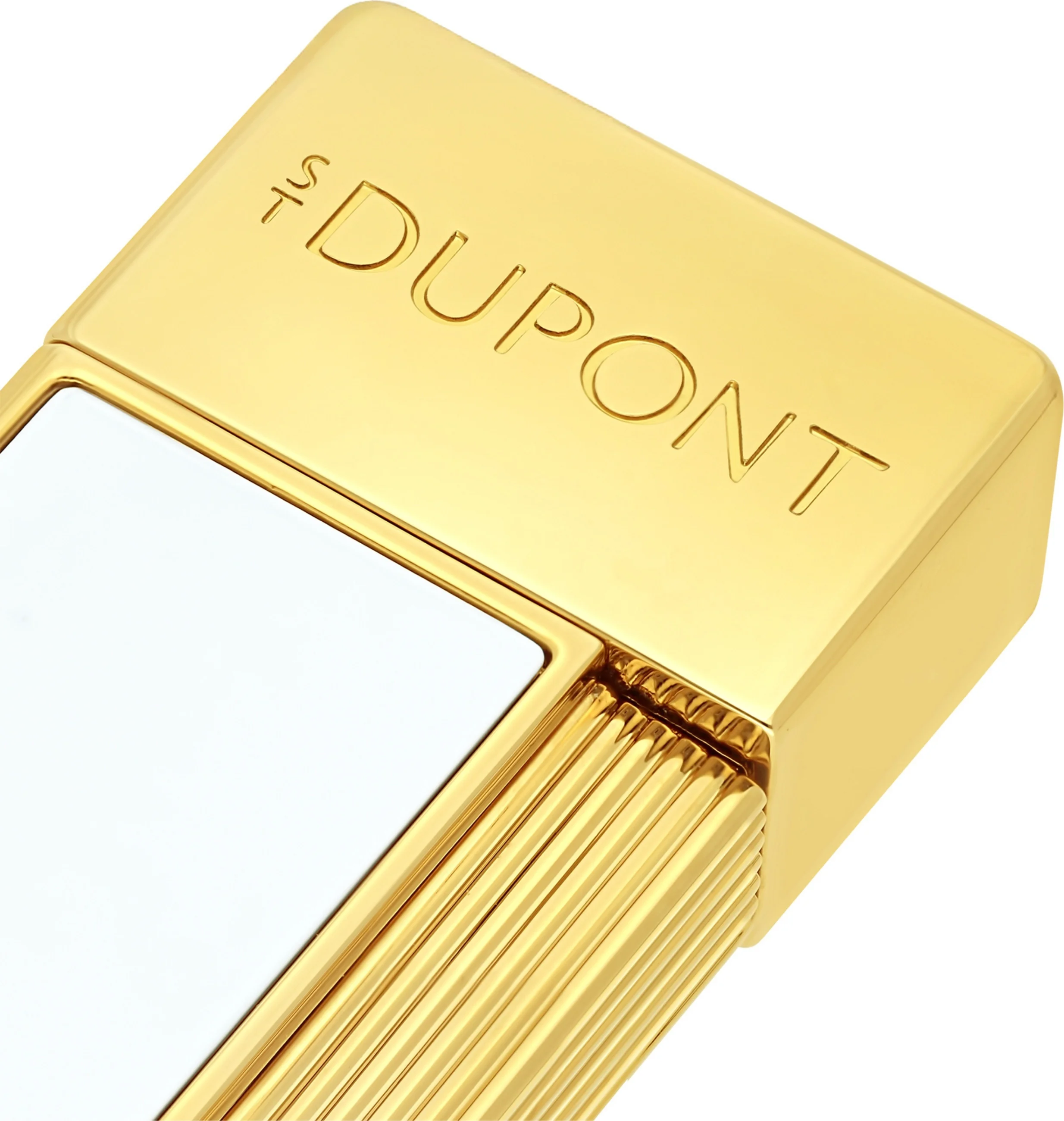 O isqueiro Twiggy combina o branco nobre com detalhes em ouro brilhante, o que o torna uma expressão de elegância atemporal.
