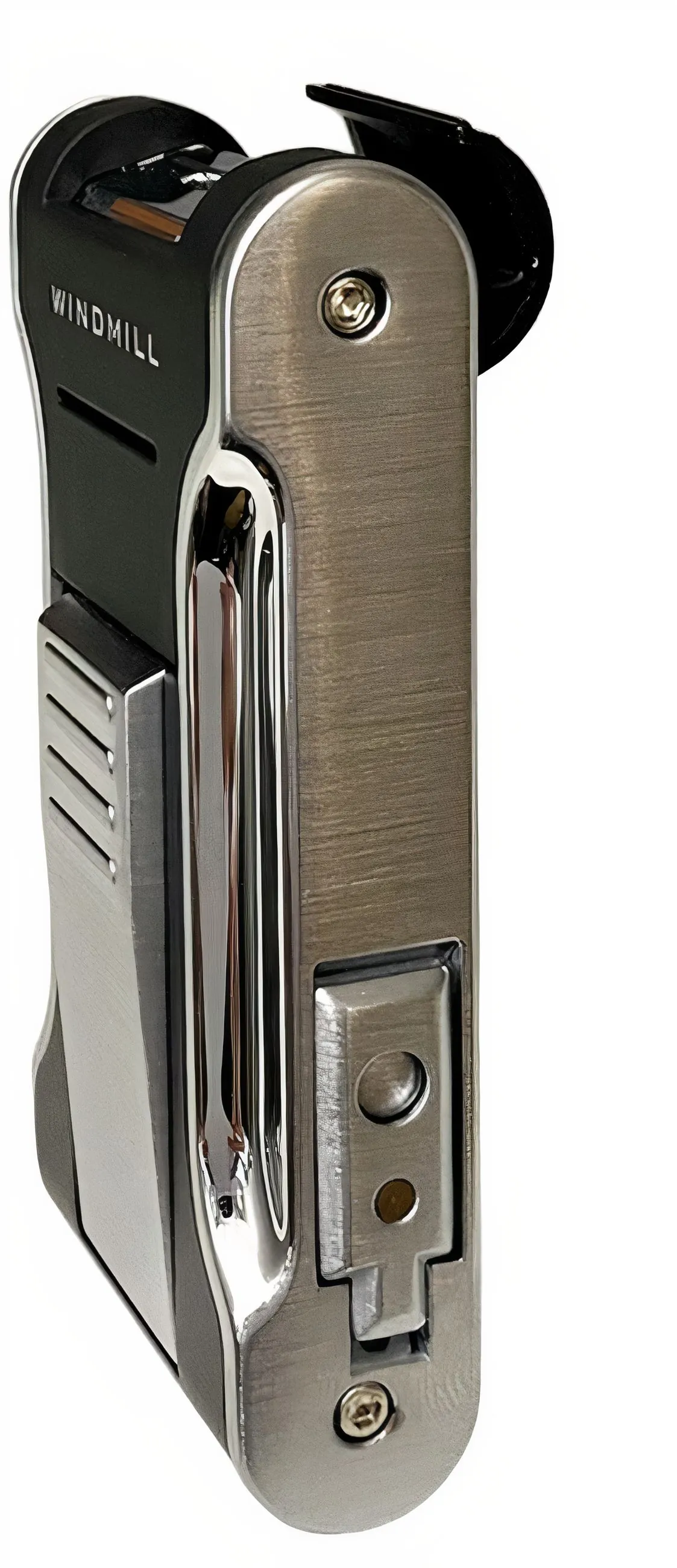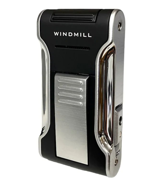 Isqueiro Jet da marca Windmill em preto fosco e prata brilhante