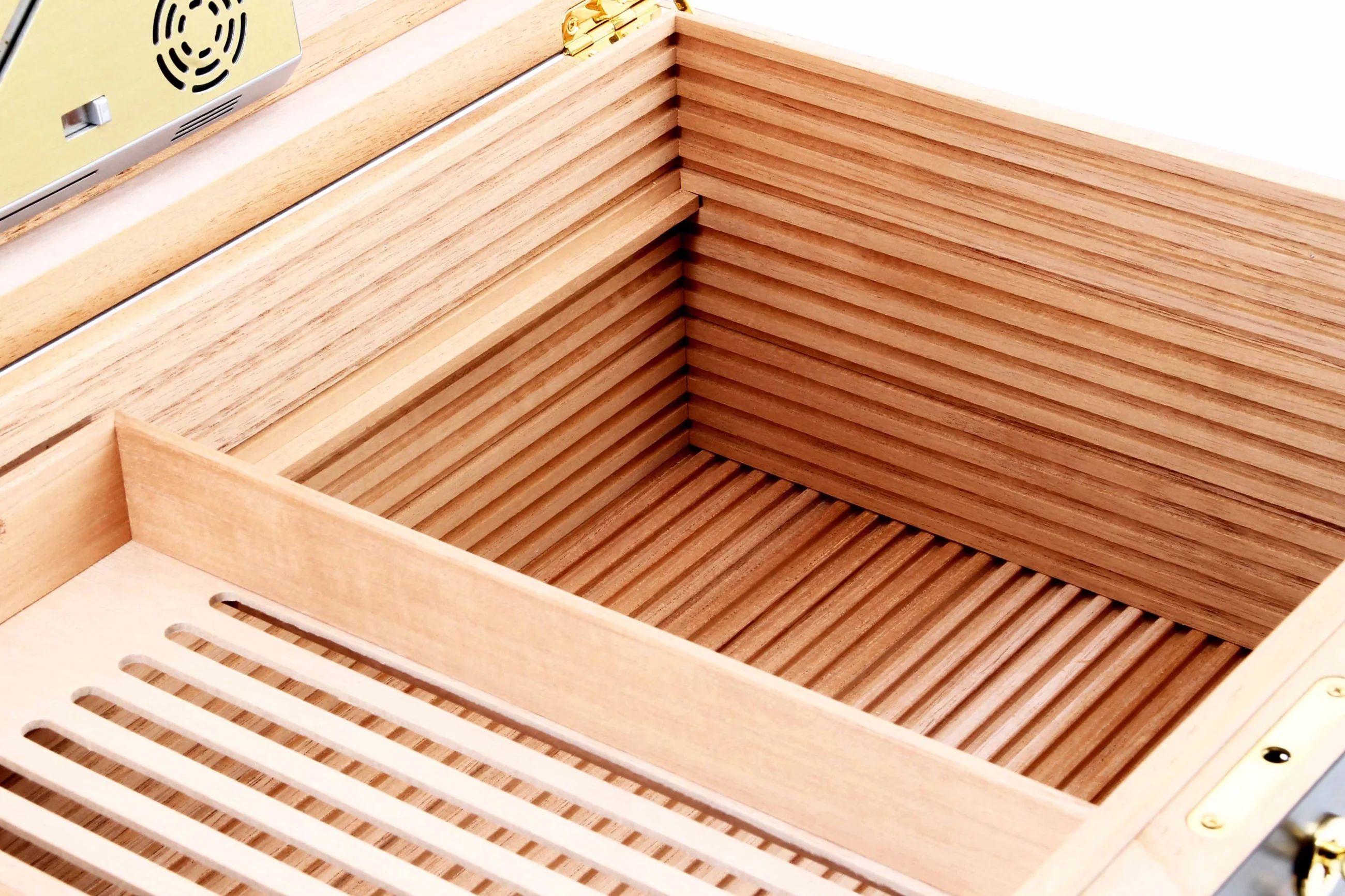 Réguas de ventilação exclusivas ("RibTech") para melhor circulação de ar dentro do humidor. Inovação Adorini protegida